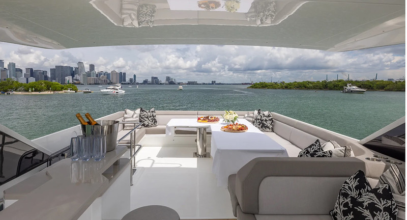 The minimum charter for the 2025 Galeon 68 is 4 hours, starting at $4,600. Longer charters are available and popular for special occasions, sunset cruises, and Bahamas trips.