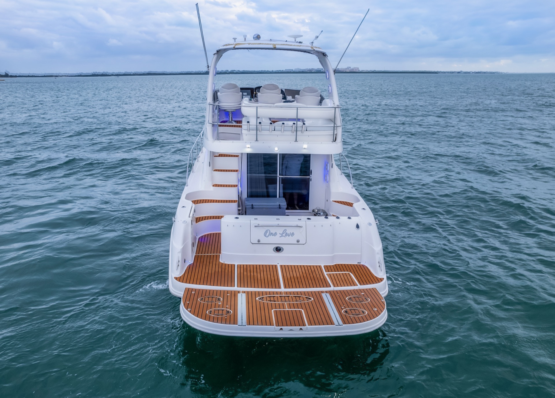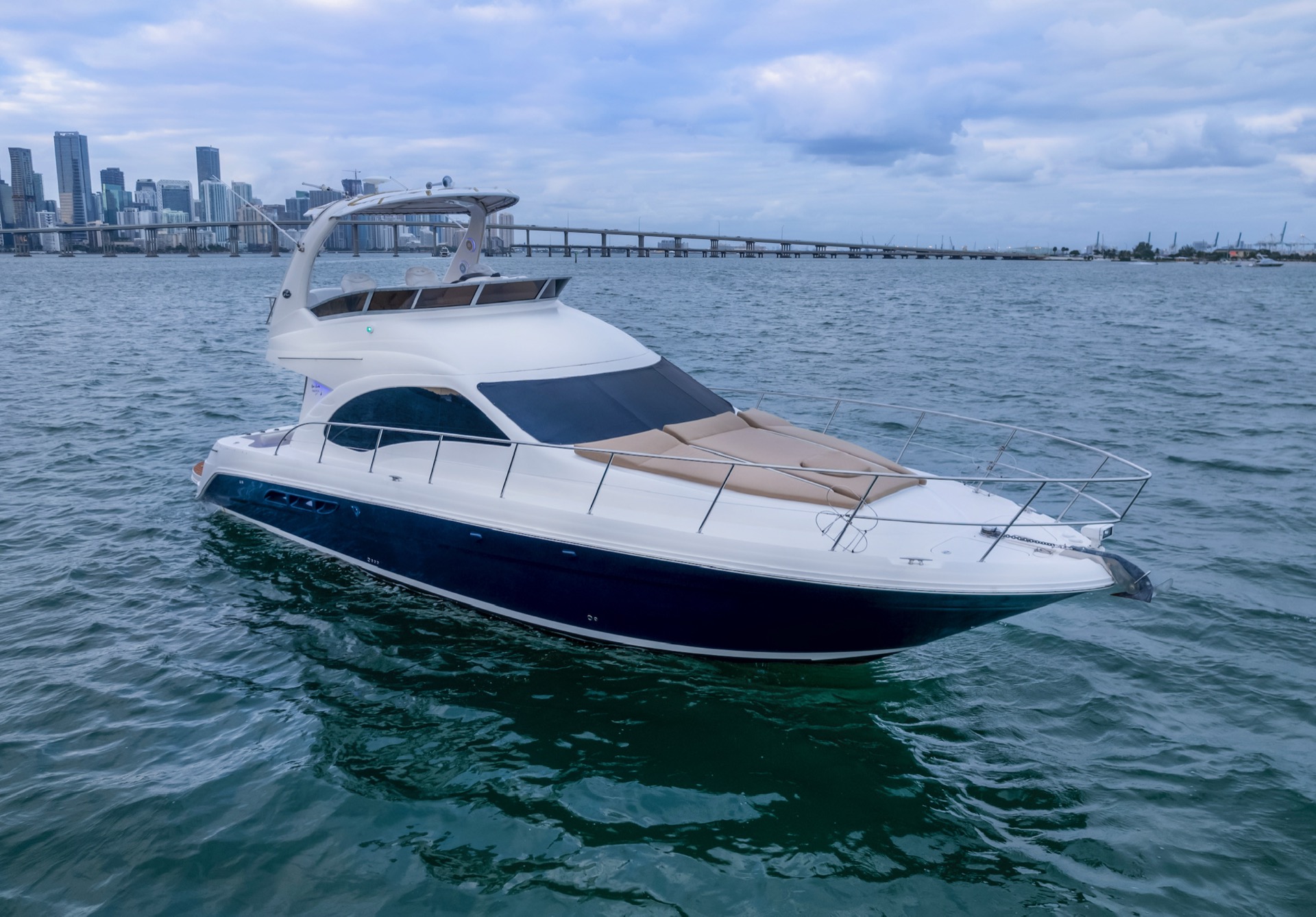 The minimum charter for the 48' Sea Ray is 4 hours, starting at $1,600. Longer charters are available and popular for special occasions, sunset cruises, and Bahamas trips.